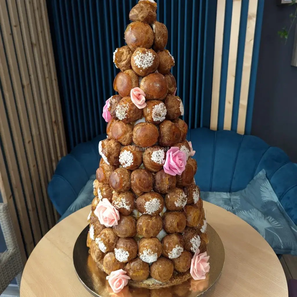 Nous réalisons également des croquembouches de formes plus classiques, à voir sur les photos et en boutique