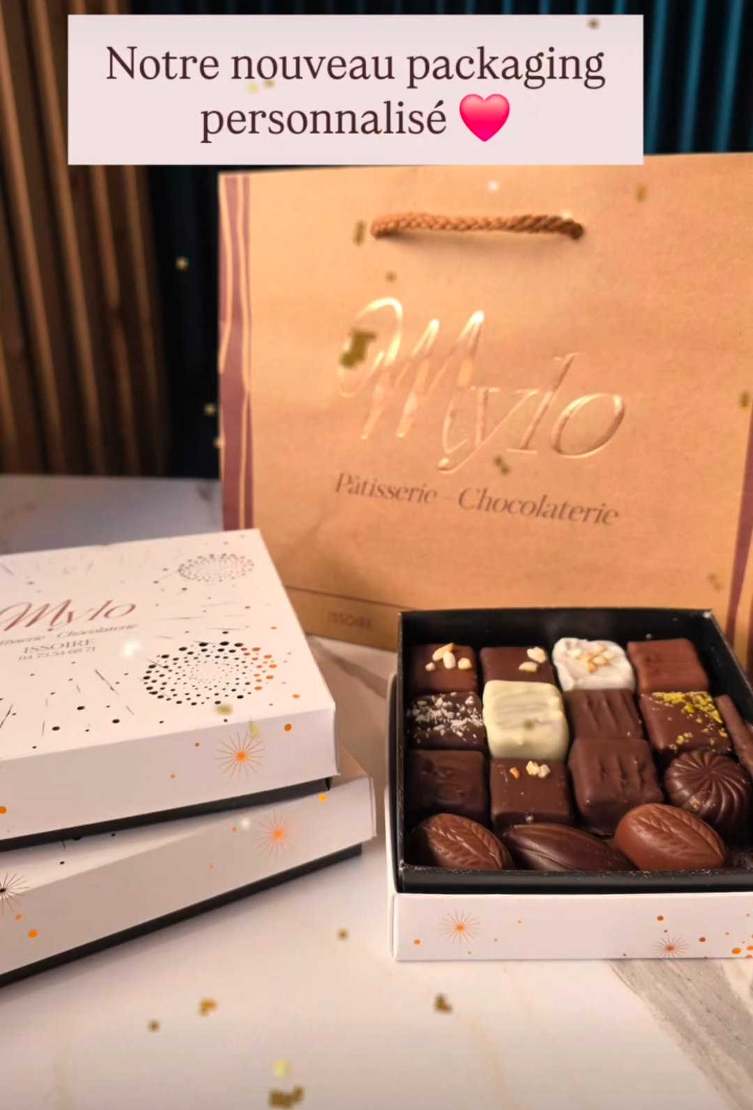 Des chocolats fabriqués dans notre labo avec des ingrédients de qualité de la petite manufacture Cluizel.